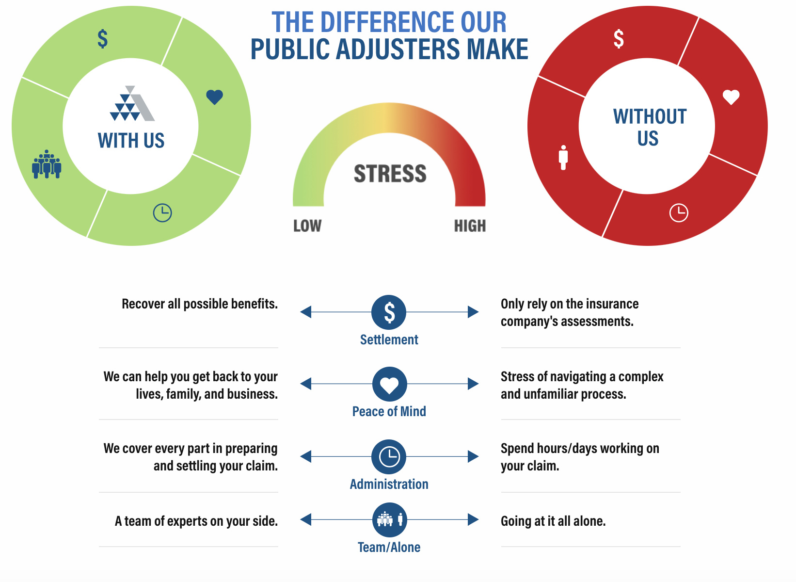 We are Public Adjusters. We care about you and the success of your insurance claim. Whether your claim is small or large, we treat every claim the same.